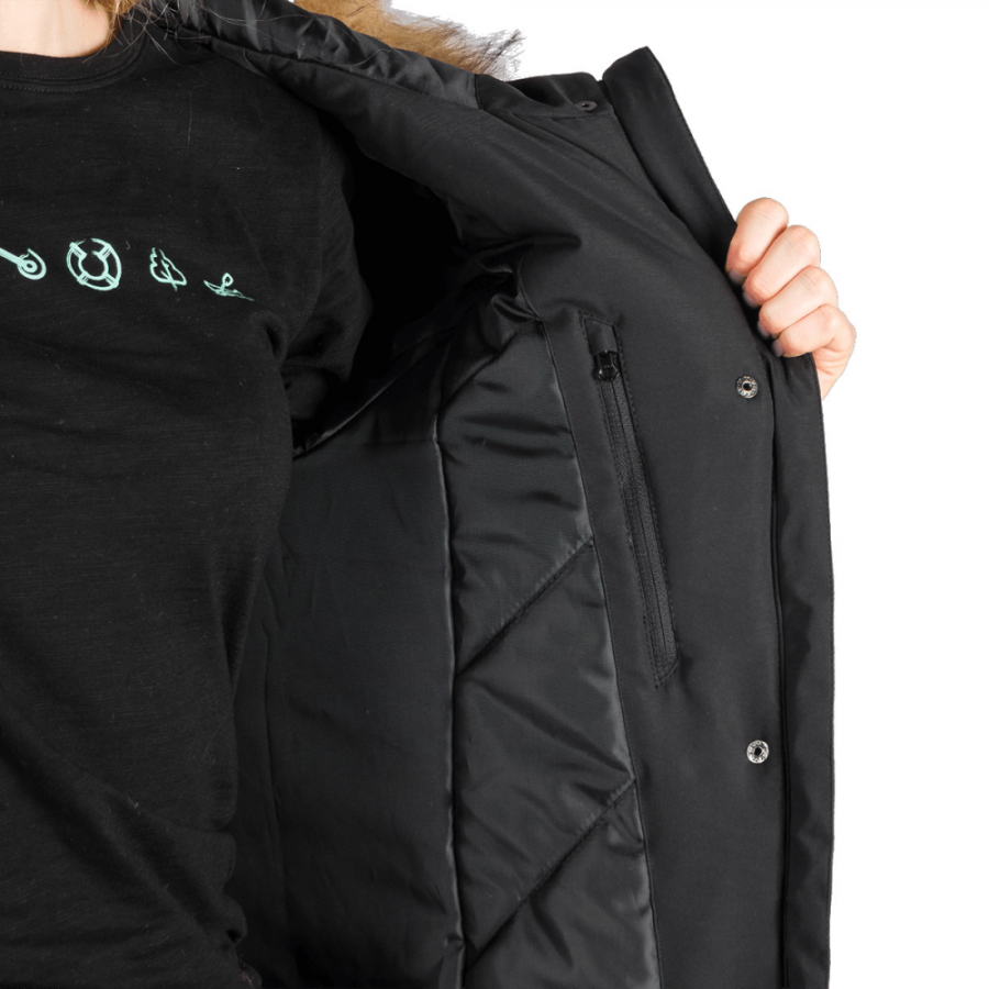 Διαθέτει υψηλής ποιότητας συνθετική μόνωση για άριστη θερμομόνωση, αποσπώμενη κουκούλα 3D, δύο πλαϊνές τσέπες και μία εσωτερική τσέπη με φερμουάρ. Το ύφασμα έχει υποστεί οικολογική αδιάβροχη επεξεργασία, η οποία εμποδίζει τη διείσδυση σταγόνων βροχής ή υγρών ακαθαρσιών, καθώς γλιστρούν από την επιφάνειά του. Αυτό ενισχύει την αντοχή στο νερό και παρατείνει τη διάρκεια ζωής του προϊόντος.
