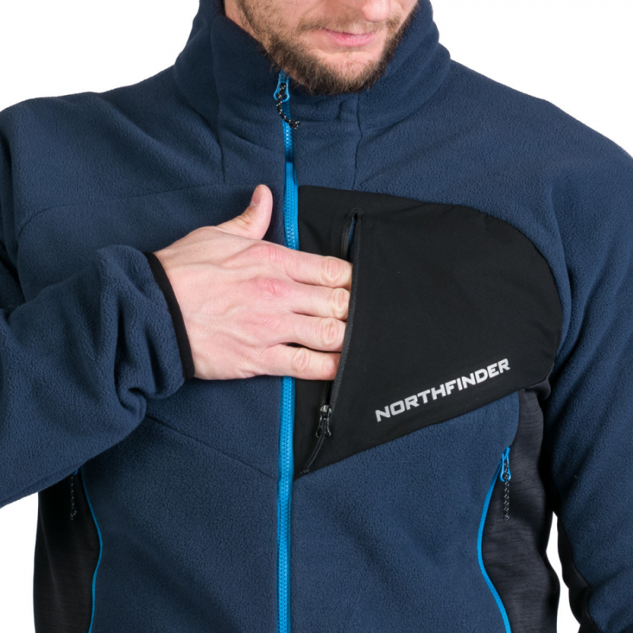 Ανδρικη ζακέτα Fleece της εταιρείας Northfinder. Δύο πλαϊνές τσέπες και μία εσωτερική τσέπη αποτελούν τον αποθηκευτικό