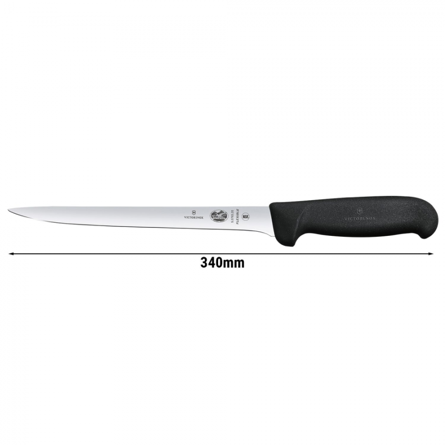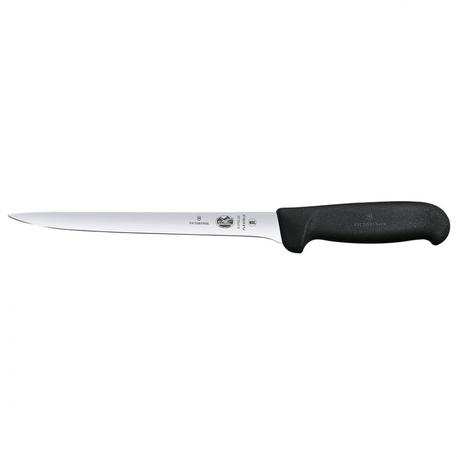 Το μαχαίρι φιλεταρίσματος της εταιρείας Victorinox με μήκος λεπίδας 20cm, διαθέτει λεπτή και εύκαμπτη λάμα, μια λάμα που κινείται με άνεση κατά μήκος της ραχοκοκαλιάς σε μαλακό κρέας ή ψάρι, ώστε να διαχωρίσει εύκολα και γρήγορα το ψαχνό από την σάρκα και τα κόκαλα. Το φιλετάρισμα ευαίσθητων κομματιών ψαριού και η προετοιμασία του καρπάτσιο γίνεται ευκολότερη με ένα τέτοιο μαχαίρι. Είναι κατασκευασμένο από ανοξείδωτο ατσάλι, ένα δημοφιλές υλικό για μαχαίρια, είναι ιδιαίτερα ανθεκτικό και δεν διαβρώνεται. Αποτελεί ένα συνδυασμό από άνθρακα και σίδηρο ως βάση και προστίθεται χρώμιο για να απωθεί τους λεκέδες και να δώσει στη λεπίδα ένα γυαλιστερό φινίρισμα.