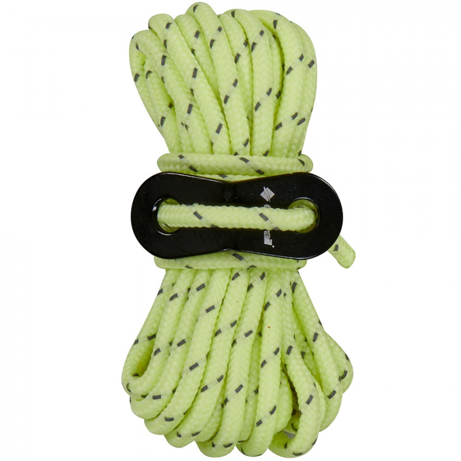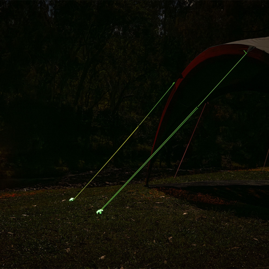 Βελτιώστε την ασφάλεια στο κάμπινγκ με αυτό το σετ 4 φωσφοριζέ σχοινιών σκηνής που λάμπουν στο σκοτάδι. Κατασκευασμένα από ανθεκτικό πολυεστέρα πάχους 4 mm, προσφέρουν καλύτερη ορατότητα τη νύχτα και μειώνουν τον κίνδυνο να σκοντάψει κάποιος. Κάθε σχοινί διαθέτει αλουμινένιο ρυθμιστή τάσης για εύκολη προσαρμογή και μήκος 3,5 m, προσφέροντας ευελιξία στη χρήση. Μείνετε ασφαλείς και ορατοί ακόμη και στο σκοτάδι!