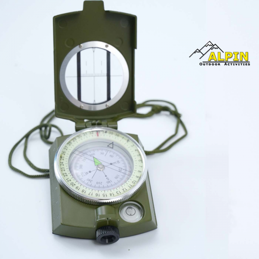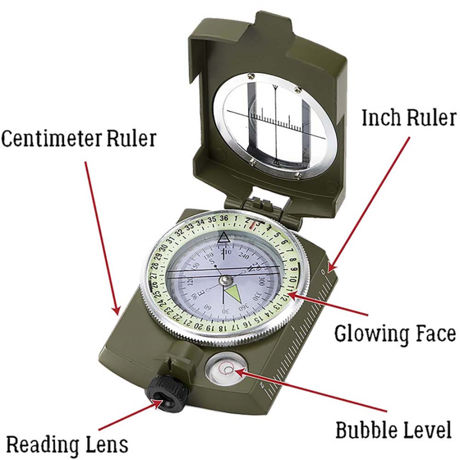 - Πρισματική πυξίδα στρατιωτικού τύπου με αδιάβροχο μεταλλικό περίβλημα και πλωτό δίσκο. Περιλαμβάνει bubble leveler,σε ίντσες και cm, βόρεια γραμμή