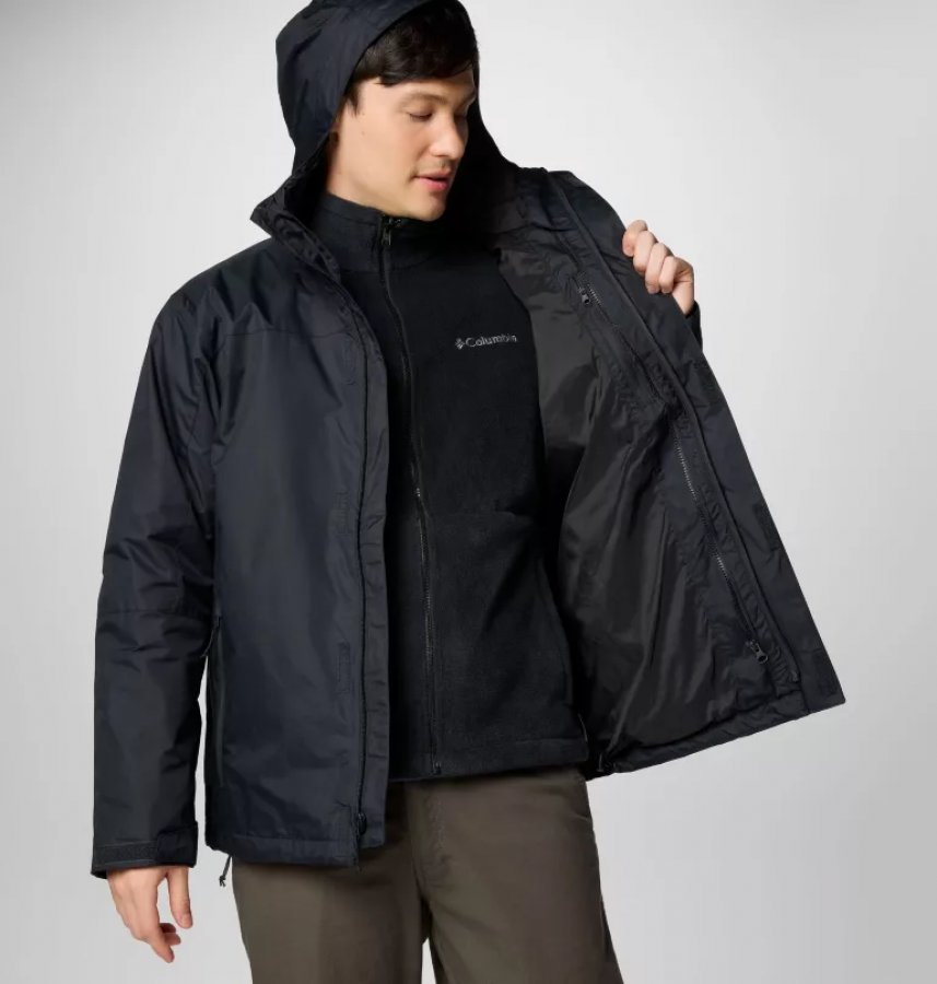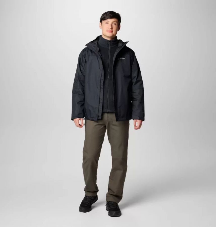 Ανδρικό μπουφάν της εταιρίας Columbia. Κατασκευασμένο από ειδικό υλικό που αντέχει στη βροχή. Με εσωτερική επένδυση για περισσότερη ζέστη. Διαθέτει κουκούλα για περισσότερη προστασία. Με αποσπώμενη εσωτερική επένδυση (3 σε 1) για να φοριέται με πολλούς τρόπους. Ιδανικό για τους χειμερινούς μήνες.