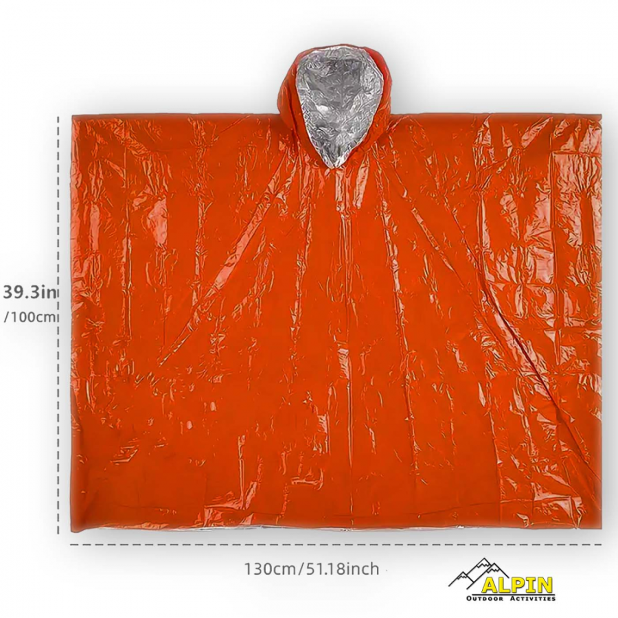 - Θερμικό poncho επιβίωσης : κατασκευάζεται με καθίζηση αεριού αλουμίνιου στη μεμβράνη αλουμίνιου και χρησιμοποιώντας την αρχή της ανάκλασης θερμότητας για να επιβραδύνει την εκπομπή θερμότητας του σώματος και να διατηρεί έως και το 90% της θερμότητας του σώματος σας. Αποτελεσματικό για την αποφυγή υποθερμίας και σοκ σε κατάσταση έκτακτης ανάγκης. Υλικό αδιάβροχο στο νερό.