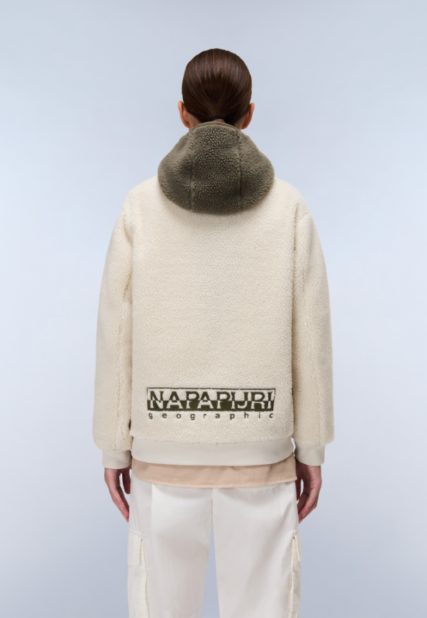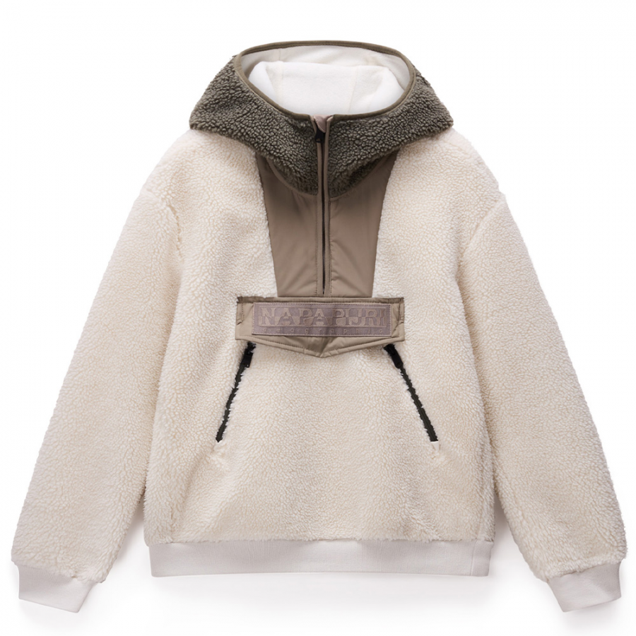 Γυναικεία μπλούζα Fleece της εταιρείας Napapijri με μπροστινές τσέπες, κουκούλα και κλείσιμο με φερμουάρ.