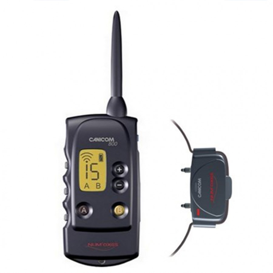 Εμβέλεια 800m Ελαφρύς πομπός με οθόνη υγρών κρυστάλλων (Βάρος 85gr) 15 κλίμακες συνεχούς έντασης 15 κλίμακες στιγμιαίου ερεθίσματος Δυνατότητα ενίσχυσης της τάσης με το πάτημα ενός κουμπιού Δυνατότητα προσαρμογής 2ου κολάρου Τροφοδοσία: ΧΕΙΡΙΣΤΗΡΙΟ: 1 3-V CR2 Μπαταρία Λιθίου CANICOM ΚΟΛΛΑΡΟ: 1 3-V CR2 Μπαταρία Λιθίου