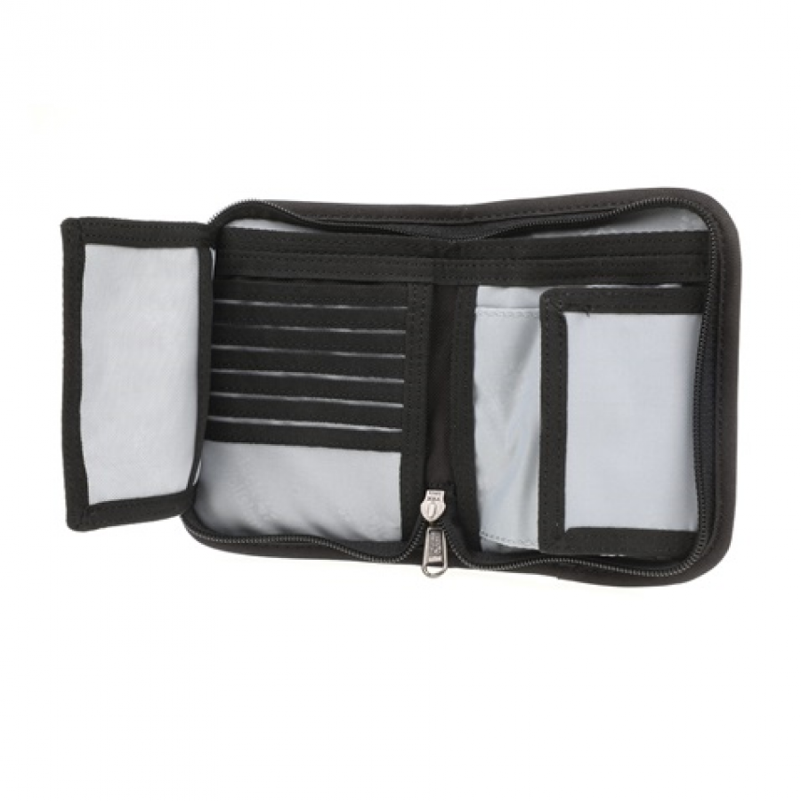 Διαθέτει αρκετές θήκες για κάρτες, χαρτονομίσματα και θήκη με φερμουάρ για τα κέρματα.
