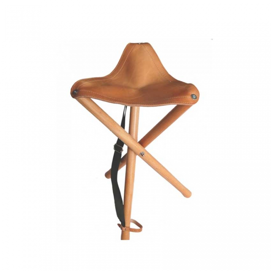 Τρίποδο σκαμνάκι με δερμάτινο κάθισμα υψηλής αντοχής κατάλληλο για κυνήγι και άλλες υπαίθριες δραστηριότητες. Μαζεύετε εύκολα και δεν πιάνει χώρο.