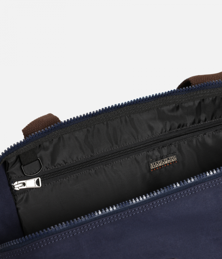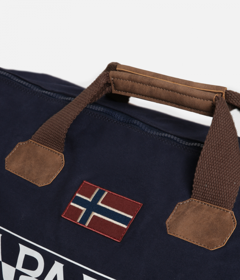 Σάκος ταξιδίου από τη νέα συλλογή του οίκου Napapijri. Από βαμβακερό ανθεκτικό ύφασμα, είναι ιδανικός για την εκδρομή, το γυμναστήριο αλλά και τη παραλία. Διαθέτει αποσπώμενο ιμάντας αυξομείωσης μεγέθους για καλύτερη προσαρμογή στο επιθυμητό μήκος. Το διάσημο λογότυπο Napapijri καλύπτει όλο το μπροστινό τμήμα της τσάντας, δημιουργώντας έτσι μια ιδιαίτερη διχρωμία του μπλε και του λευκού χρώματος.